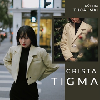 Set vest croptop nữ đen 2 lớp Tết 2023 Crista Tigma cột tay có độn vai