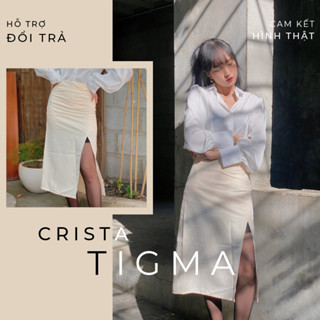 Chân váy công sở Midi Crista Tigma sợi cotton tổng hợp mỏng nhẹ