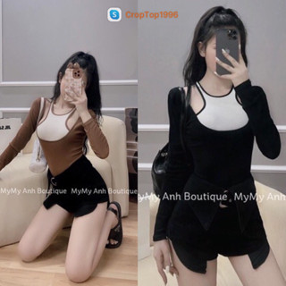 Áo thu đông phối yếm hở vai ( có ảnh thật ) CRT18