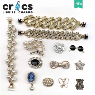 Jibbitz charms Dây Xích Kim Loại Ngọc Trai Trang Trí Giày crocs Đính Đá Thời Trang