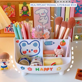Hộp Đựng Bút Để Bàn Lưu Trữ Văn PHòng Phẩm Họa Tiết Dễ Thương Tặng Hình Dán