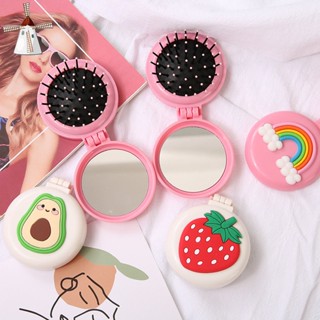 Lược Chải Tóc Dạng Gập Bằng Nhựa Có Túi Khí Và Gương Trang Điểm Dễ Thương Cho Nữ
