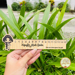 Thước gỗ khắc laser các hình ngẫu nhiên - Dụng cụ học tập khắc tên theo yêu cầu - Độ dài 15cm