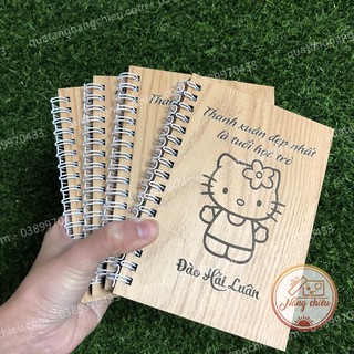 Sổ tay bìa gỗ cá nhân - Khắc hình và chữ theo yêu cầu - Hình Hello Kitty xinh xắn