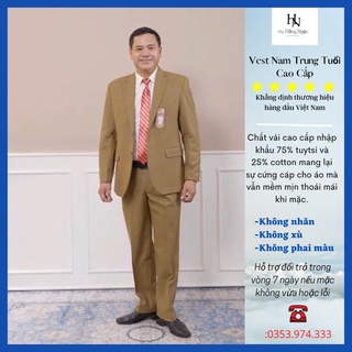 Vest trung niên Hồng Ngọc 1 bộ com lê trung niên cao cấp chất liệu nhập khẩu ẤN ĐỘ