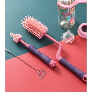Bộ cọ bình sữa 3 chi tiết silicon cao cấp tay cầm xoay 360 độ