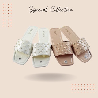 Dép bệt mũi vuông da bóng quai ngang đính ngọc xinh hotrend