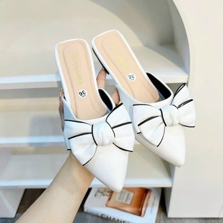 Dép sục mũi nhọn da mềm phối nơ bản to hai màu cực đẹp