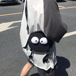 Túi Đeo Vai Vải Canvas Màu Đen Họa Tiết Bùi Nhùi 3 Kiểu Dễ Thương Cho Nữ