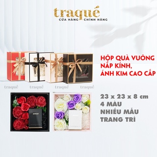[Hộp nắp kính - 6 mẫu hoa trang trí] Hộp quà tặng giấy Kraft thân thiện môi trường - kèm giấy lót và dây thừng trang trí