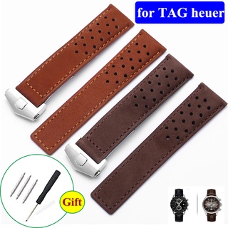 Dây Đeo Bằng Da Bò Thật 22mm Màu Xám Đen Xám Cho TAG Heuer CARRERA