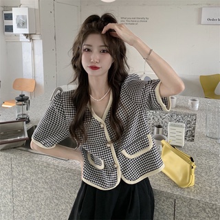 Áo Sơ Mi Ngắn Tay Cổ Chữ V Họa Tiết Kẻ Ô Phong Cách Hàn Quốc Mới Cho Nữ NZ-CS-25