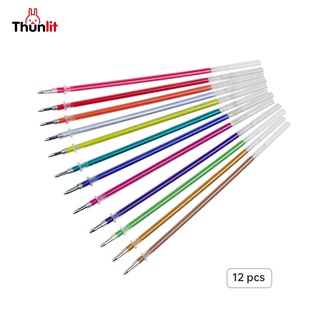 Set 12 ruột bút mực gel THUNLIT nhiều màu sắc dạ quang lấp lánh khác nhau ngòi 1.0mm 13cm dành cho trường học văn phòng