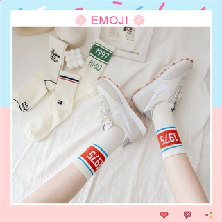 Tất thể thao in năm sinh dành cho nam nữ phong cách hiện đại năng động vớ cổ cao thấm hút mồ hôi kháng khuẩn EMOJI TD028