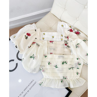 [HÀNG THIẾT KẾ CAO CẤP] Áo Croptop Hoa Nhí Xếp Li Tay Phồng Viền Bèo Công Sở / Dạo Phố Nữ Tính