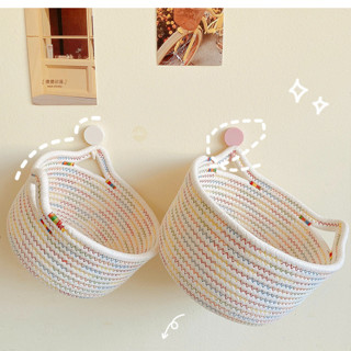 Giỏ Đan Sợi Cotton Hình Tai Mèo Dễ Thương Đựng Đồ Dùng Tiện Dụng Cho Phòng Khách