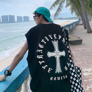 Áo Thun Sát Nách Dáng Rộng In Chữ Thập Phong Cách Hip Hop Thời Trang Đường Phố Cho Nam