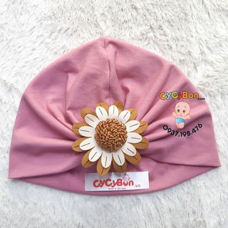 Mũ Nón Turban Cho Bé Gái Thun Cotton Bao Co Giãn Đính Bông Cúc Nâu Trắng - Có Đủ Size Kể Cả Cho Bé!