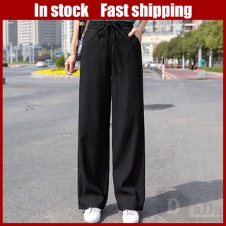 Daduhey Quần dài ống rộng lưng cao 6 màu tùy chọn thời trang năng động cho nữ