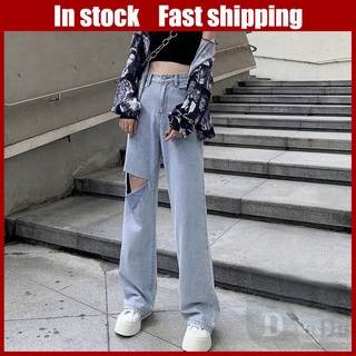 Daduhey Quần jean ống rộng phong cách hàn quốc cho nữ size S-5Xl