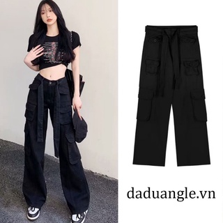 Daduhey Quần dài ống rộng thiết kế nhiều túi phong cách Mỹ thời trang thường ngày cho nữ