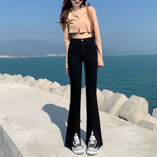 Daduhey Quần Jeans Nữ Dài Lưng Cao Ống Xẻ Thời Trang Hàn
