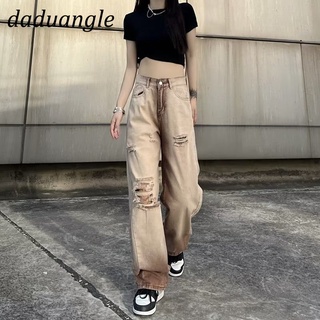 Quần jean Daduhey lưng cao ống rộng kiểu rách thời trang ins retro Mỹ cho nữ