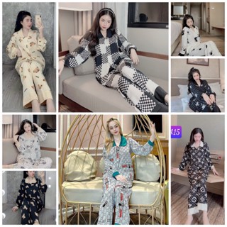 Bộ ngủ- đồ ngủ pijama cổ sen kate lụa , Bộ pijama nhiều họa tiết đẹp thiết kế cổ sen hot