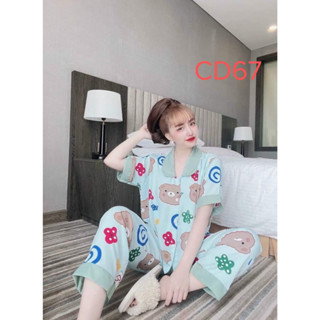 Thanh lý Pizama cổ sen tay ngắn quần dài hoạ tiết đáng iu