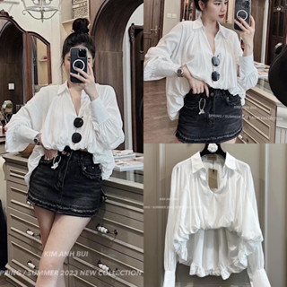 Áo Sơ Mi Trắng Nhún Eo Xinh Xắn (Hình Thật) Áo Sơmi Kiểu Chiết Eo Ulzzang Bánh Bèo