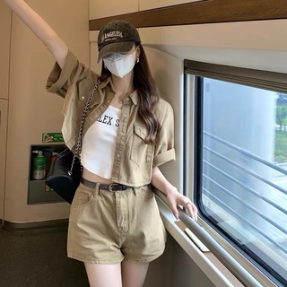 Set 3 Món Kaki (loại 1) Áo Khoác Tay Ngắn Kèm Áo Dây ALBX Mix Quần Short