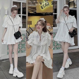 Váy Trắng Babydoll Cúc Bọc MPB (hình thật) Đầm Trắng Xoè Form Rộng Viền Bèo Tiểu Thư