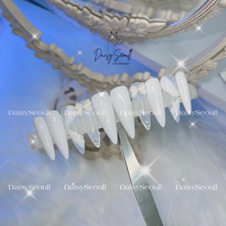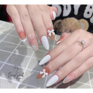 Nailbox móng úp màu trắng cô dâu thiết kế gắn nơ to gel xi măng nổi