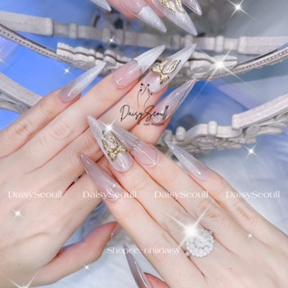 Nailbox thiết kế cô dâu tráng gương viền nổi màu vàng