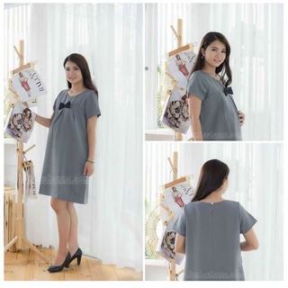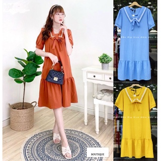 [HANNA 40-70KG] Đầm bầu công sở sơ mi dễ thương dáng baby doll vải mềm mát có túi bên sườn có dây nơ cột sau