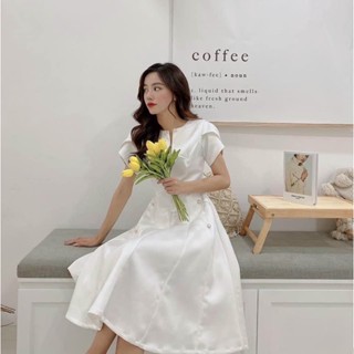 Đầm nữ dự tiệc / Váy dáng xoè nhúm eo đính cúc tôn dáng - Đầm nữ Hoài Thương