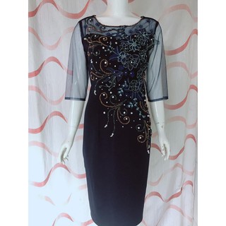 Đầm nữ trung niên dự tiệc, thiết kế đuôi cá, phối tay lưới , đính sang trọng