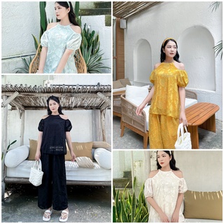 Set quần suông và áo yếm vải tơ thêu hoa hồng khoét vai sang chảnh cho nàng béo bụng hoặc mẹ bầu DG 4292