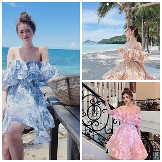Áo váy tơ trễ vai dài tay bo phồng tay vạt gợi cảm nữ tính 3 màu hot hit DG4593
