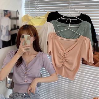 Áo Croptop Dệt Kim Cổ Chữ V Dáng Ôm Phong Cách Hàn Quốc Thời Trang Quyến Rũ Cho Nữ