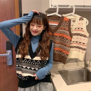 Áo Dệt Kim Sát Nách Dáng Rộng Cổ Chữ V Phong Cách Hàn Quốc Cho Nữ