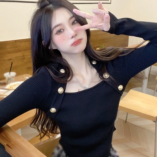 Áo Thun Dài Tay Áo Thun Cổ Vuông Dệt Kim Dáng Ôm Thời Trang Quyến Rũ Cho Nữ