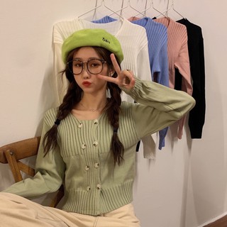 Áo Croptop Tay Dài Cổ Vuông Dáng Ôm Thời Trang Xinh Xắn Cho Nữ