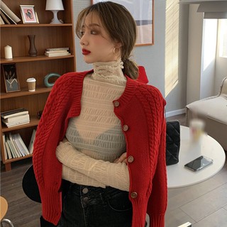 Áo sweater mỏng tay dài cổ cao ôm dáng phong cách cá tính cho nữ