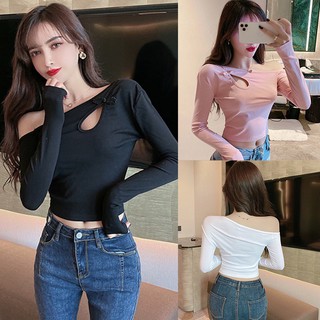 Áo dệt kim tay dài hở vai phong cách thời trang Hàn