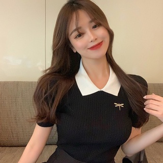 Áo Croptop Dệt Kim Tay Ngắn Phong Cách Hàn Quốc Thời Trang Mùa Hè Xinh Xắn Cho Nữ