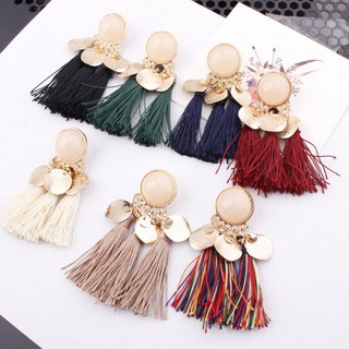 Khuyên tai kim loại phối tua rua nhiều màu tùy chọn thời trang sành điệu
