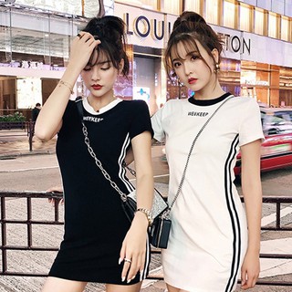 Đầm kẻ sọc tay ngắn dáng ôm phong cách gợi cảm cho nữ
