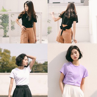 Áo thun tay ngắn cổ tròn phối nơ sau lưng cho phái nữ