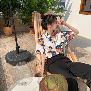 Áo kiểu tay ngắn chất Chiffon hoạ tiết hoạt hình thiết kế thanh lịch